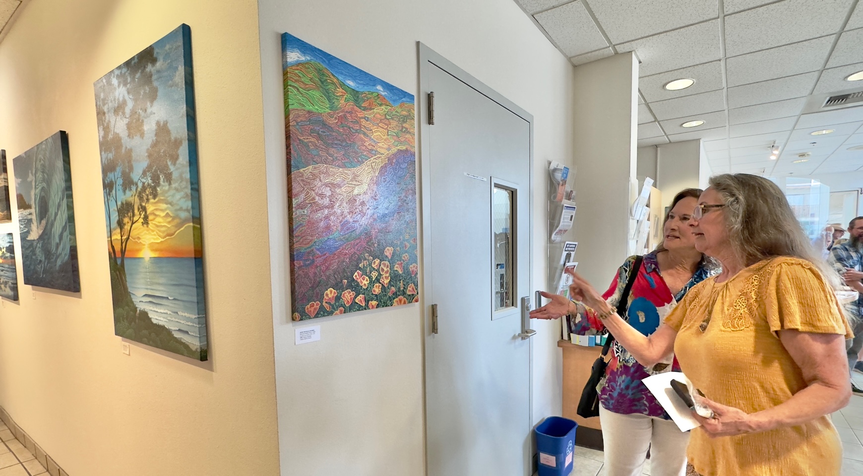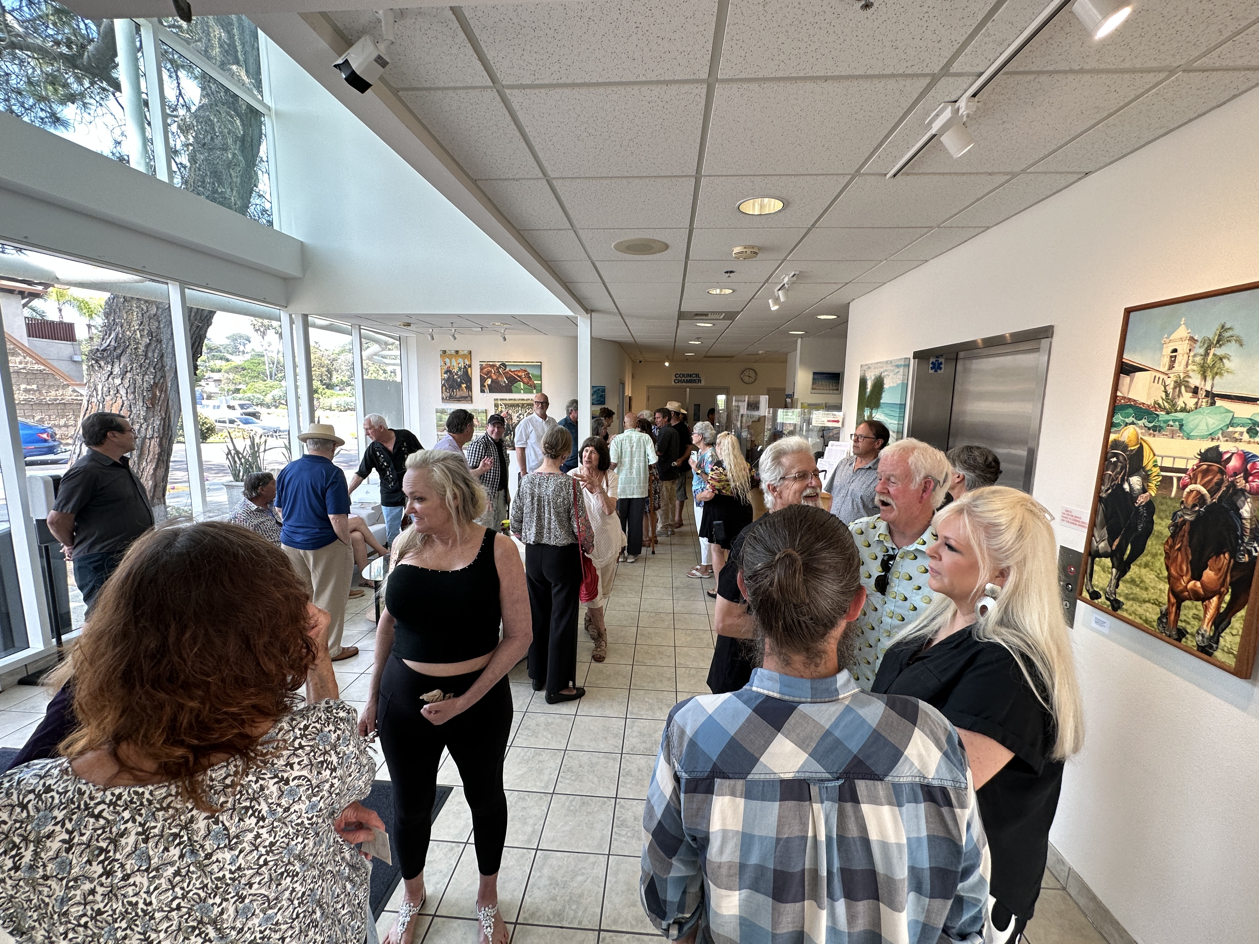 The Solana Beach City Hall Gallery is an unique space dedicated to supporting local artists by providing a complimentary, high-traffic venue to display their work. The program hosts six exhibitions each year, each lasting two months, featuring a rotating display of artistic talent through solo, group, or curated exhibits. The gallery has showcased a variety of art forms, such as watercolors, photographs, recycled metal sculptures, children’s art, and painted surfboards.
