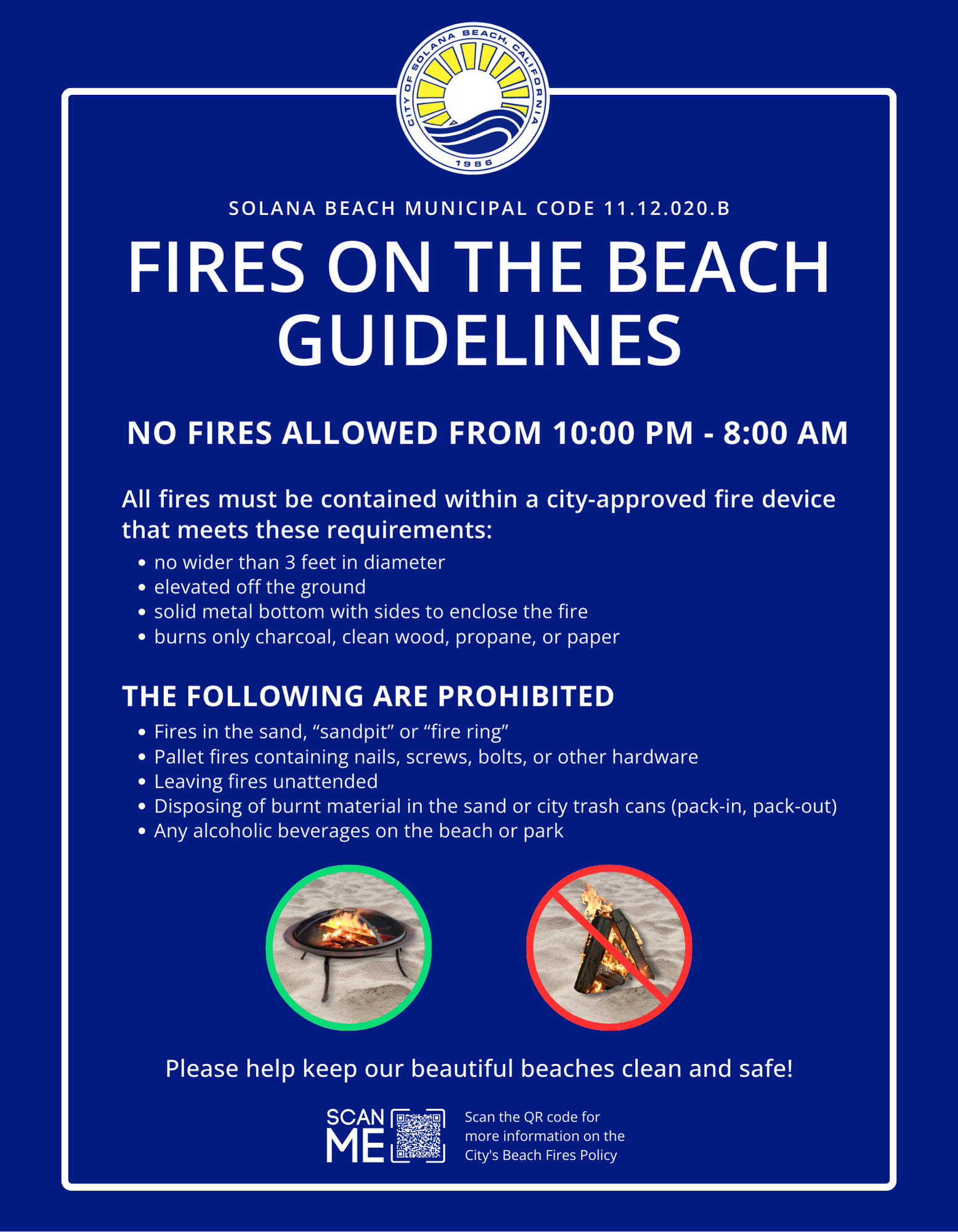 By following these guidelines and respecting our natural surroundings, we can all contribute to a safe and enjoyable summer for residents and visitors alike. For more detailed information, refer to Solana Beach Municipal Code 11.12.020(B).