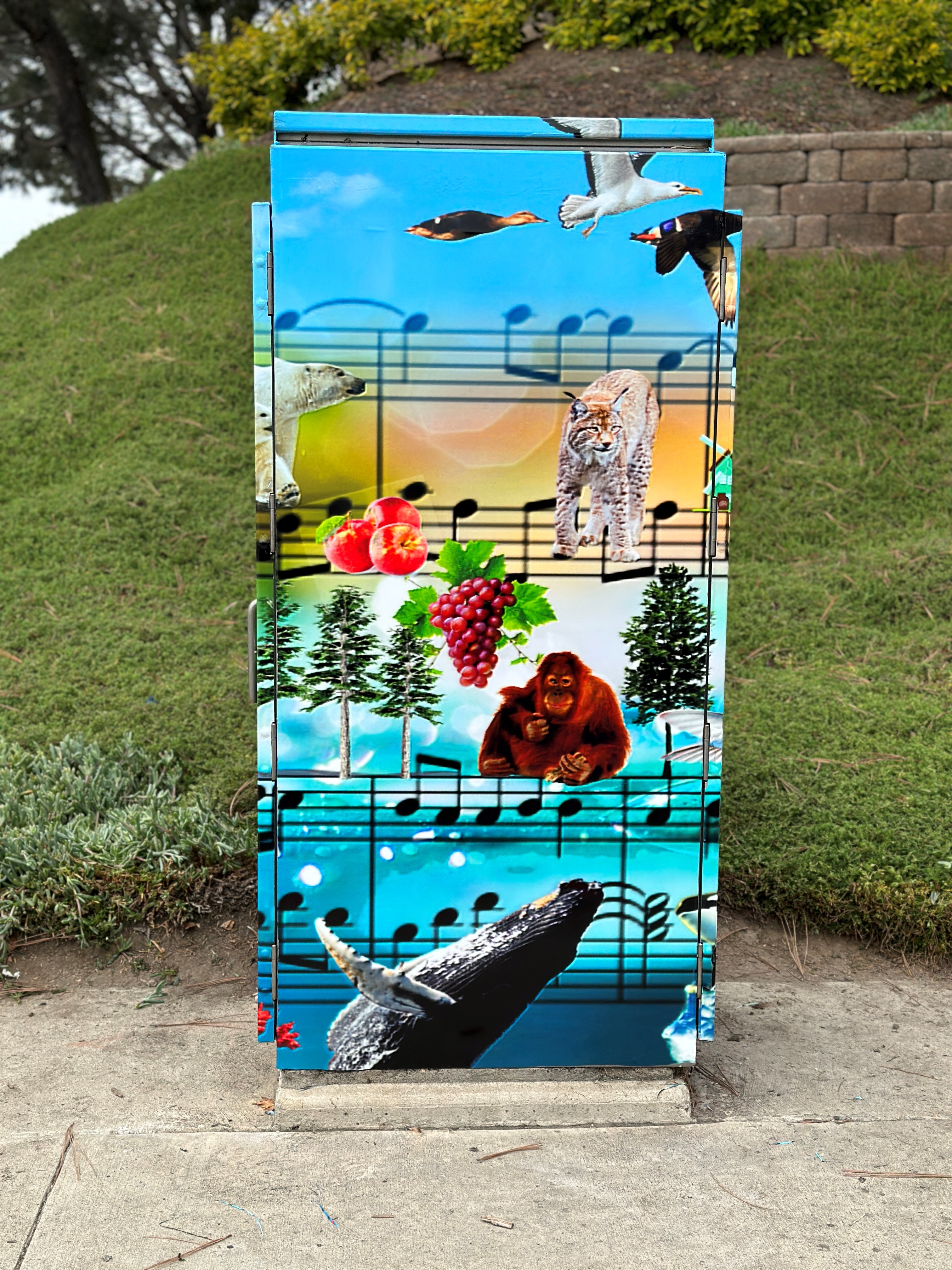 The City of Solana Beach is dedicated to nurturing a vibrant and artistic community. To continue expanding on its ongoing mission, the City initiated the Solana Beach Utility Box Wrap Project, inviting artists of all kinds – including graphic designers, photographers, and illustrators – to participate by creating artistic wraps for select utility boxes. The goal was to use art to transform ordinary infrastructure into public works of art.