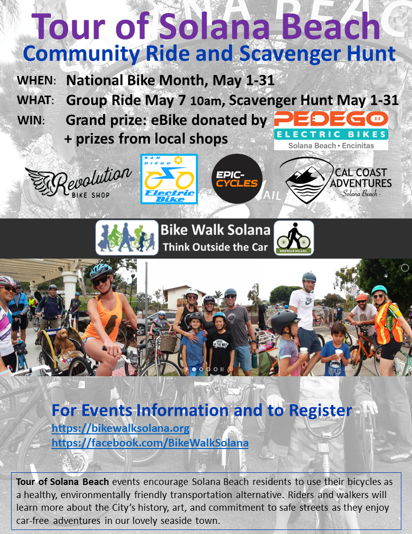 Win an E-bike! Complete the Self-guided Tour of Solana Beach Scavenger Hunt Any Time in May.