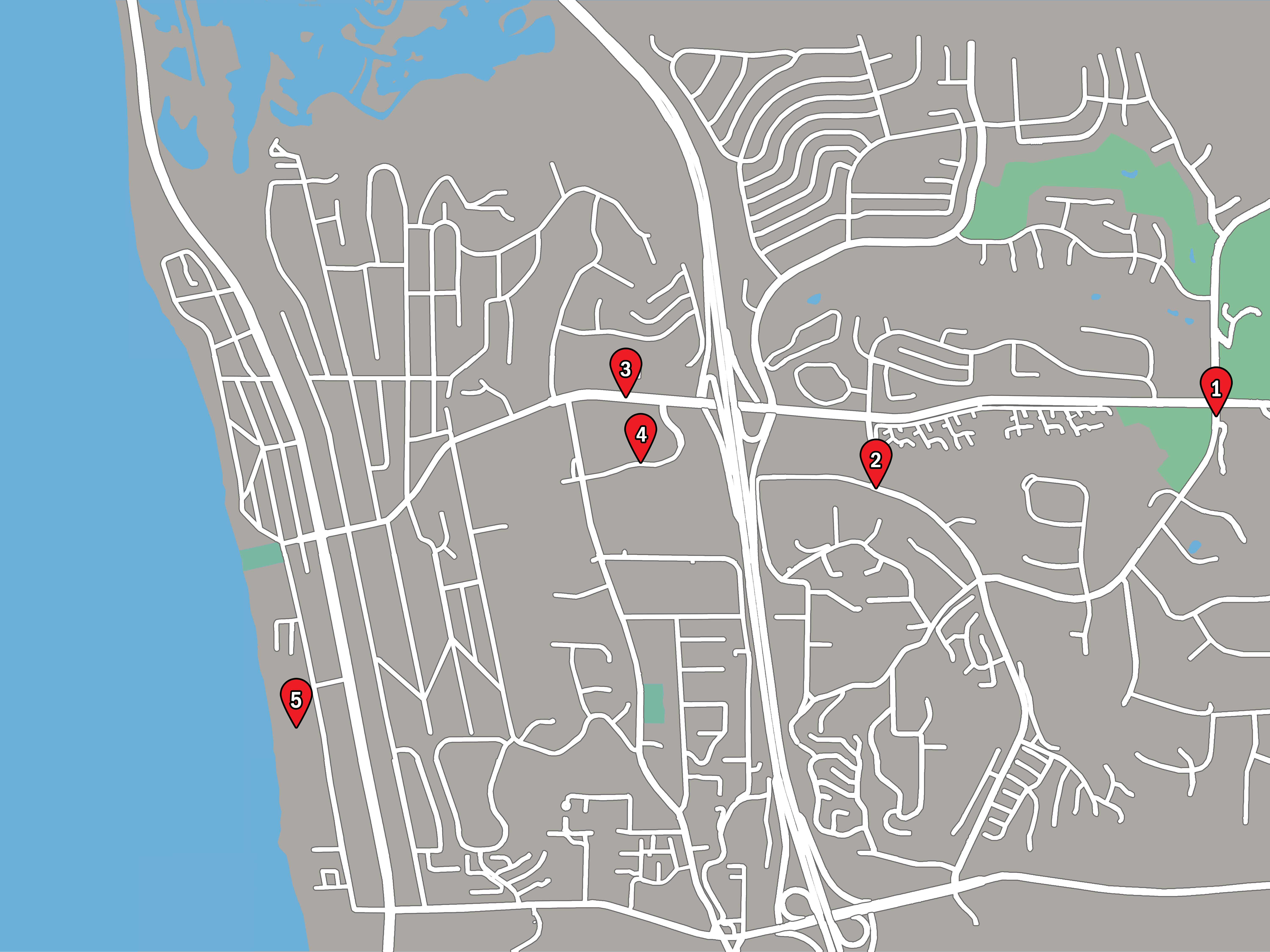 • This temporary art site is the newest location for the program and is located within the newly constructed median center divide on Highland Drive in front of the main entrance to the Lomas Santa Fe Country Club. This temporary art site is highly visible for both vehicles and pedestrians.