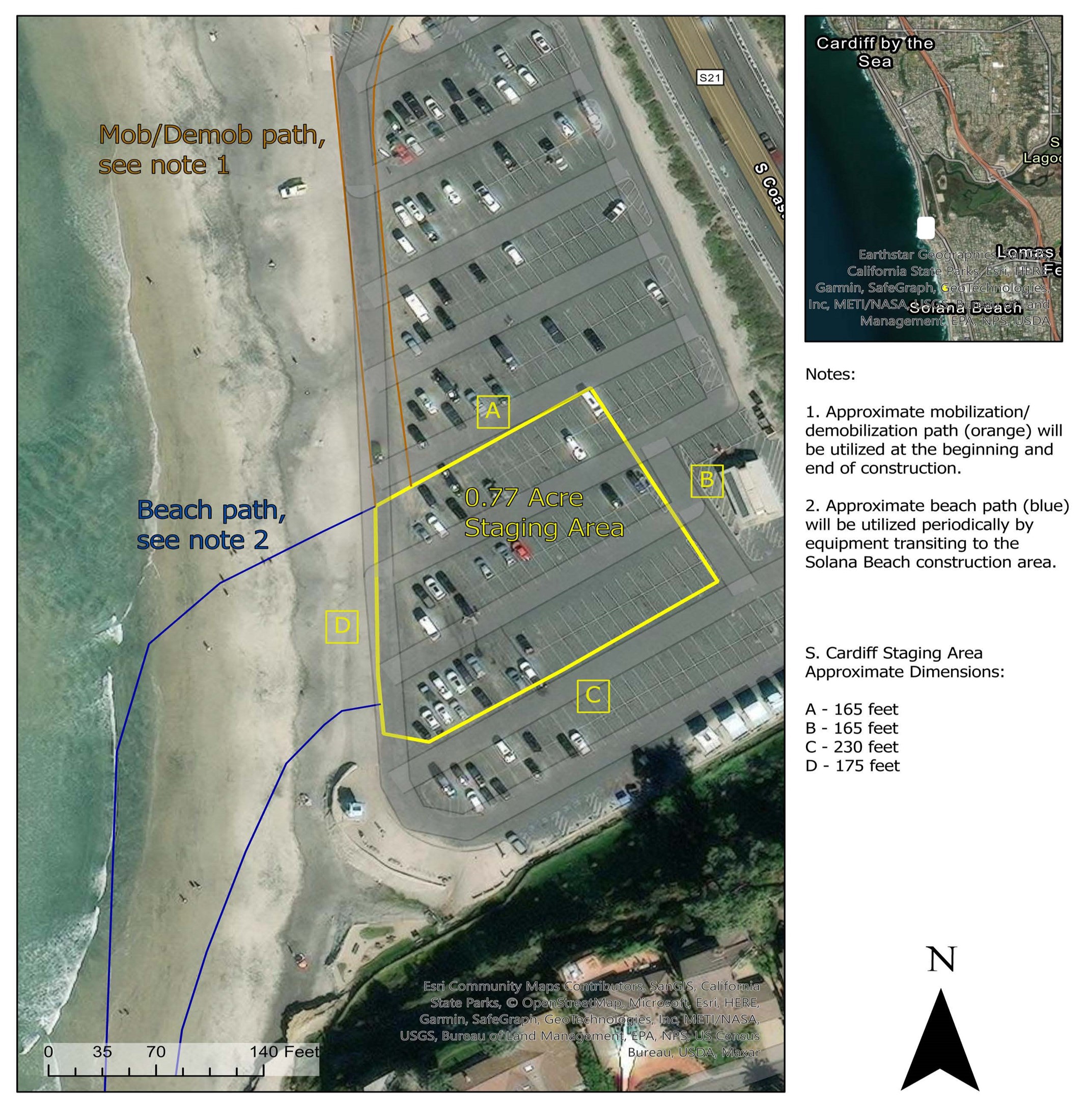 • Construction staging at Seaside Parking Lot (Cardiff) and at Fletcher Cove